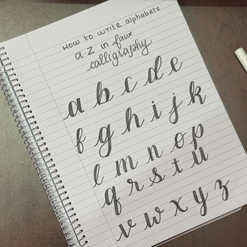 Basic calligraphy writing strokes and alphabet using faux and brush pen calligraphy.
